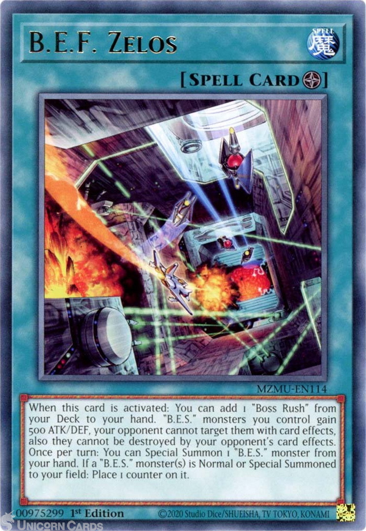- MZMU-EN114 B.E.F. Zelos : Rare 1st Edition Mint YuGiOh Card
