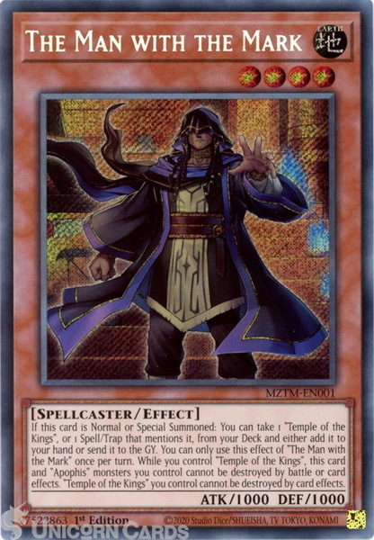 - MZTM-EN001 The Man with the Mark : Secret Rare 1st Edition Mint YuGiOh Card