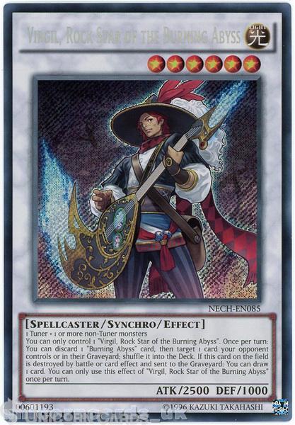 - NECH-EN085 Virgil, Rock Star of the Burning Abyss Secret Rare UNL edition Card