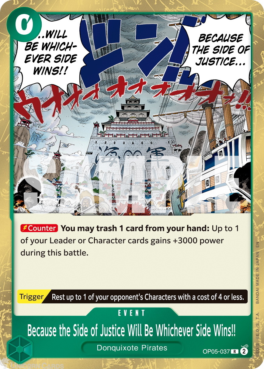 OP05-037 Because the Side of Justice Will Be Whichever Side Wins!! : Rare Foil English One Piece TCG Card : PRB02: One Piece Card The Best: Premium Booster Vol. 2