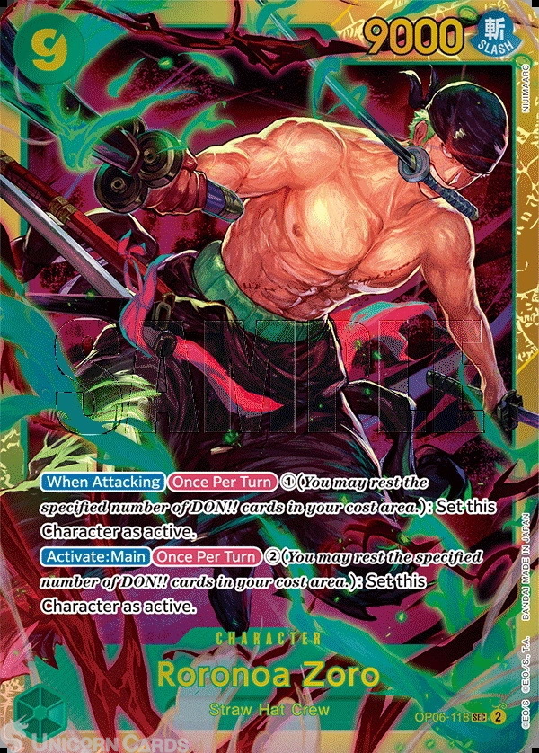 OP06-118 Roronoa Zoro : Secret Rare Non-Foil English One Piece TCG Card : LD01: Learn Together Deck Set