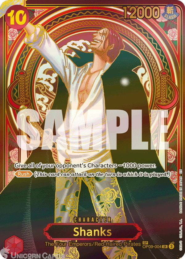 OP09-004 Shanks : SP Special Card Gold Foil English One Piece TCG Card : OP13: Carrying on His Will