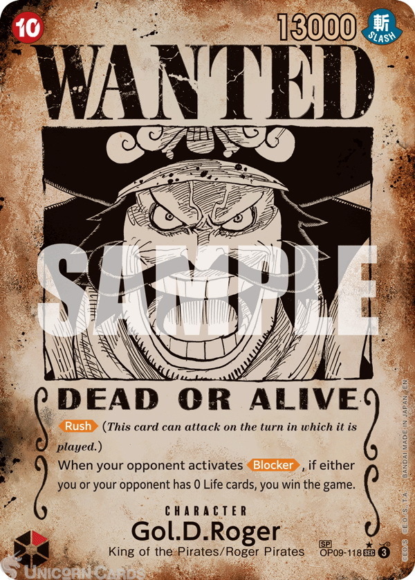 OP09-118 Gol.D.Roger : SP Special Card Wanted Poster English One Piece TCG Card : OP13: Carrying on His Will