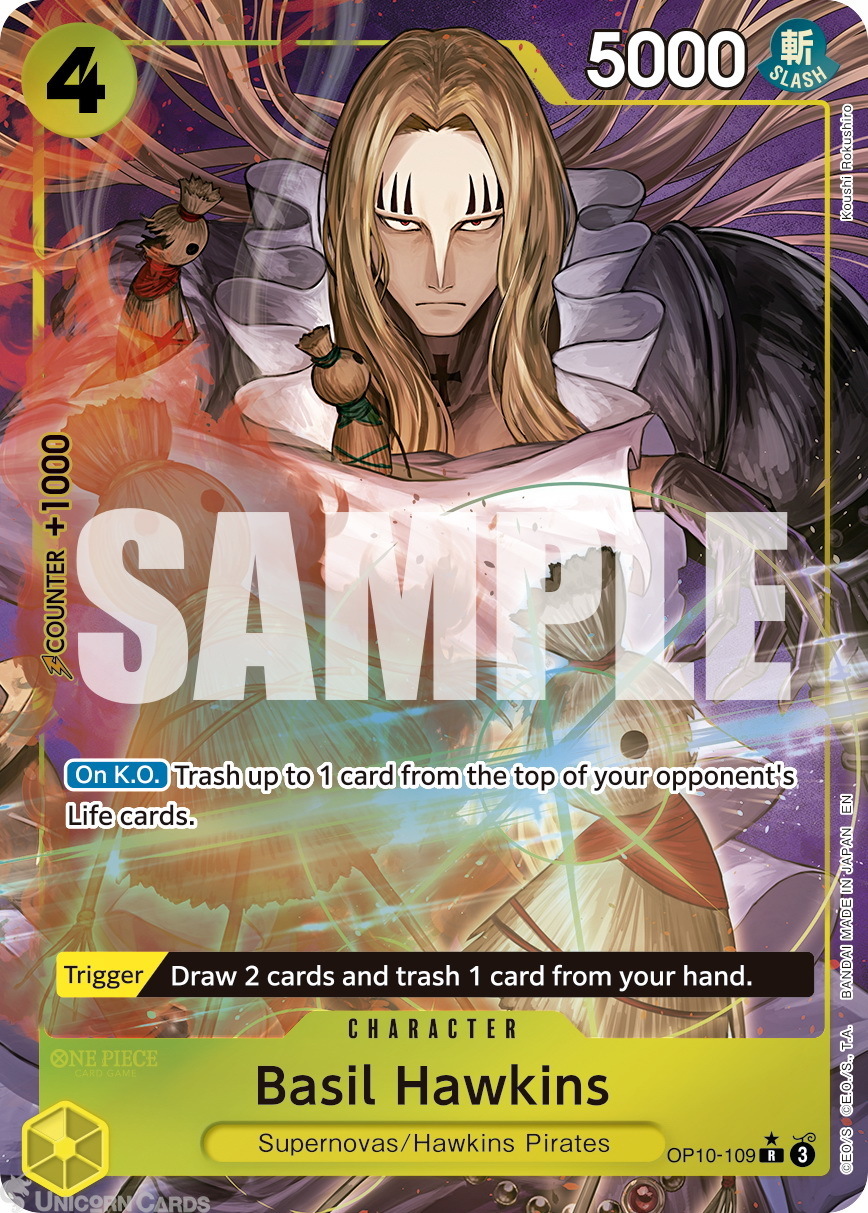 OP10-109 Basil Hawkins : Rare Alternative Art Foil English One Piece TCG Card : PRB02: One Piece Card The Best: Premium Booster Vol. 2