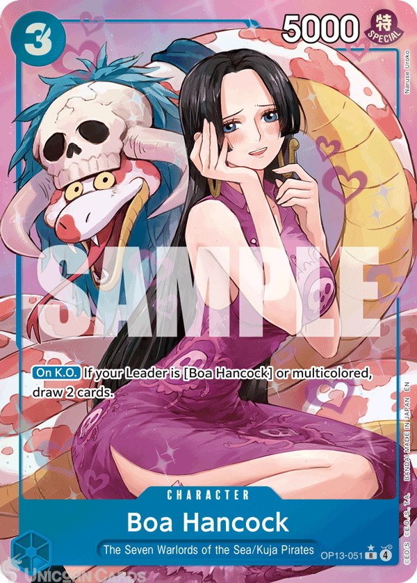 - Effect: [On K.O.] If your Leader is [Boa Hancock] or multicolored, draw 2 cards.