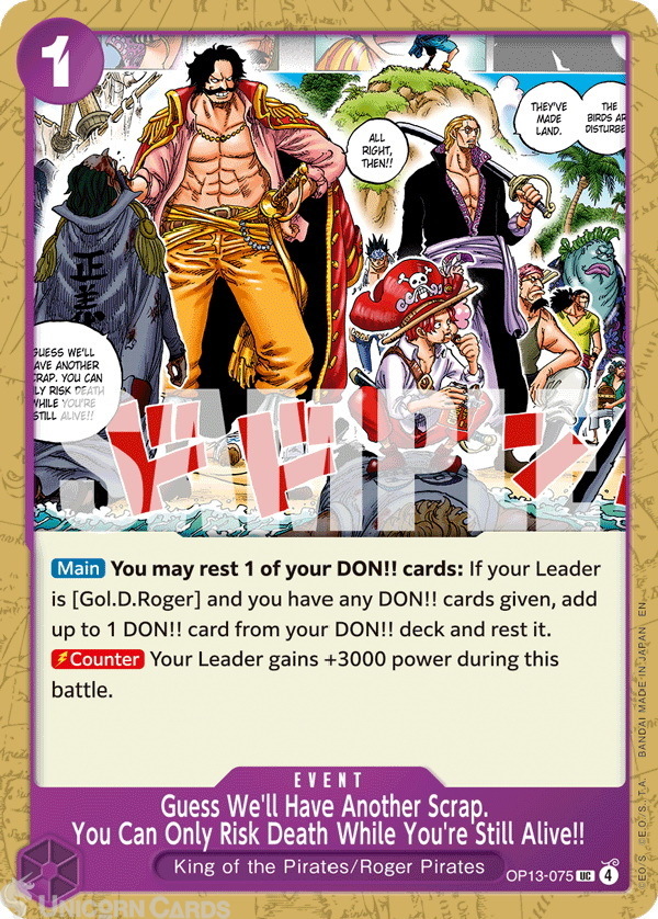 OP13-075 Guess We'll Have Another Scrap. You Can Only Risk Death While You're Still Alive!! : Uncommon English One Piece TCG Card : OP13: Carrying on His Will
