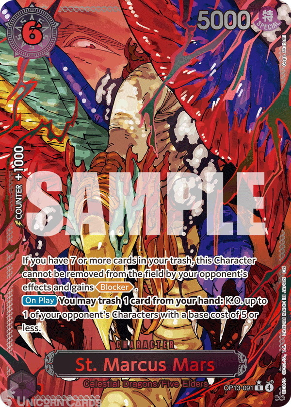 OP13-091 St. Marcus Mars : Rare Alternative Art English One Piece TCG Card : OP13: Carrying on His Will