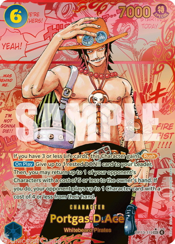 OP13-119 Portgas.D.Ace : Secret Rare Alternative Art Red Manga English One Piece TCG Card : OP13: Carrying on His Will