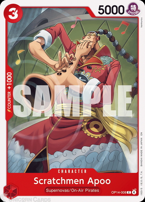 OP14-008 Scratchmen Apoo : Common English One Piece TCG Card : OP14: The Azure Sea's Seven