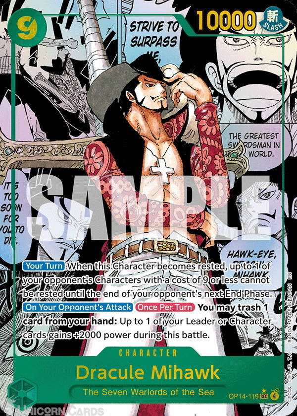OP14-119 Dracule Mihawk : Secret Rare Manga Alternative Art English One Piece TCG Card : OP14: The Azure Sea's Seven