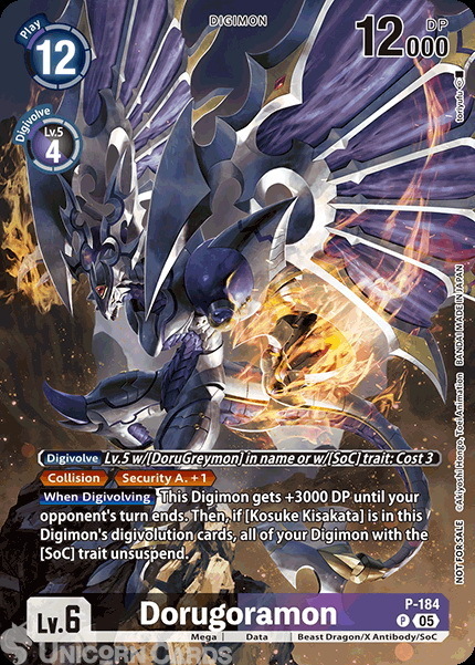 P-184 Dorugoramon : Promo Digimon Card : BT21: Booster World Convergence BT21: Illustration Celebration Pack Cards