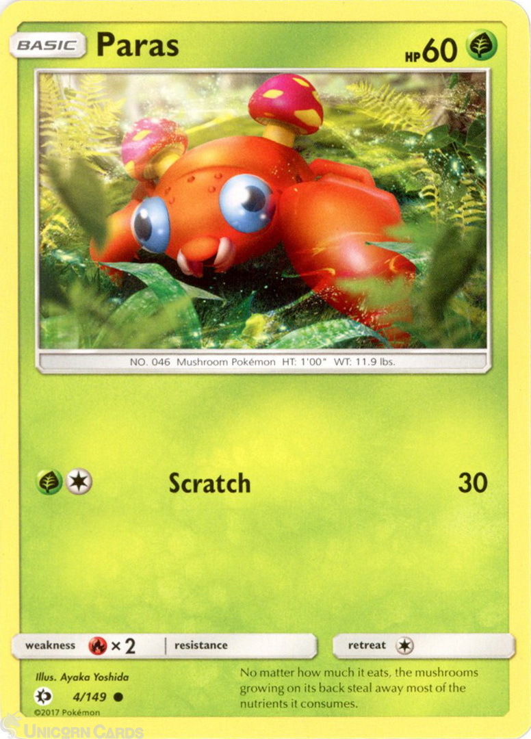 Paras 4/149 : Common Mint/Near Mint Pokemon Card : SM01: Sun & Moon