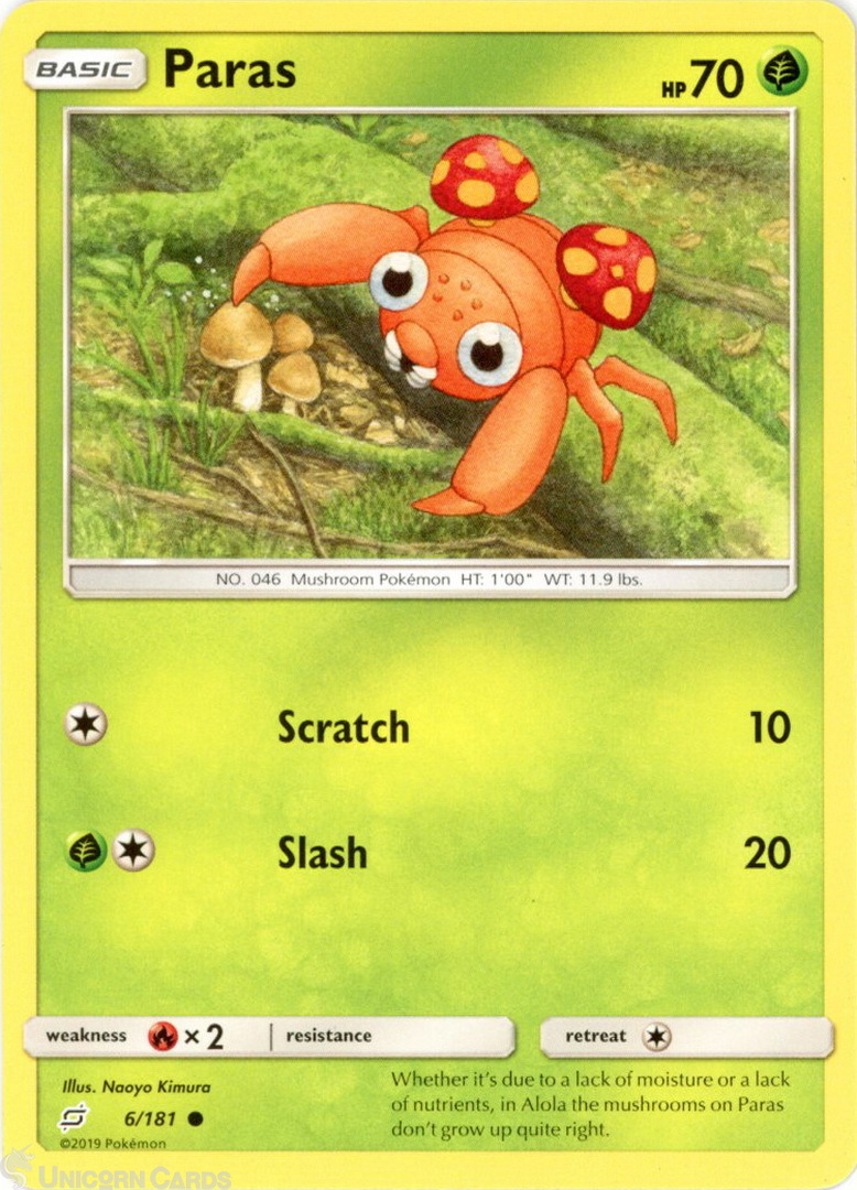 Paras 6/181 : Common Mint/Near Mint Pokemon Card : SM09: Team Up