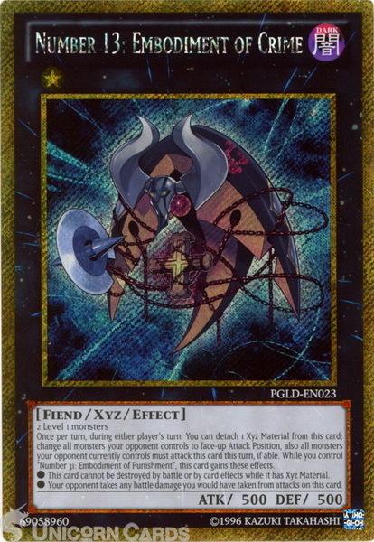 - PGLD-EN023 Number 13: Embodiment of Crime Gold Secret Rare UNL Edition Mint Card