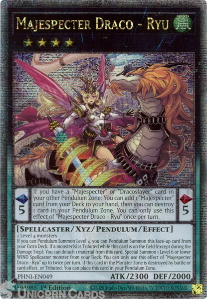 - PHNI-EN049 Majespecter Draco - Ryu :: Quarter Century Secret Rare 1st Edition YuGiOh Card