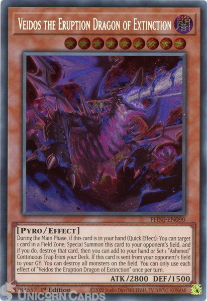- PHNI-EN090 Veidos the Eruption Dragon of Extinction :: Secret Rare 1st Edition YuGiOh Card