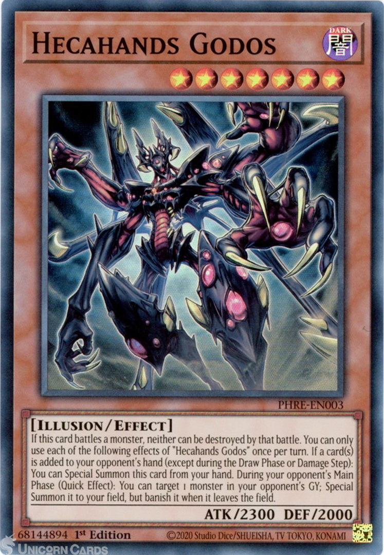 - PHRE-EN003 Hecahands Godos : Super Rare PHRE: Phantom Revenge 1st Edition Mint YuGiOh Card