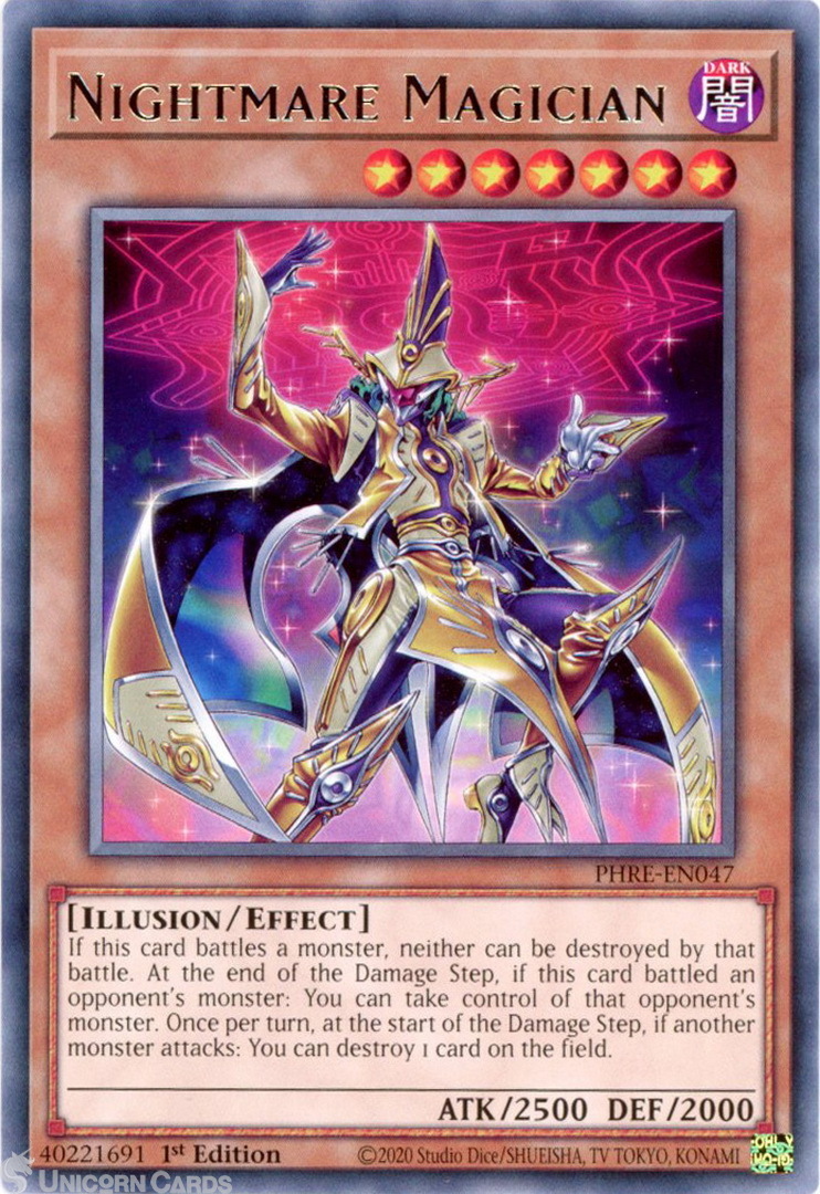 - PHRE-EN047 Nightmare Magician : Rare PHRE: Phantom Revenge 1st Edition Mint YuGiOh Card