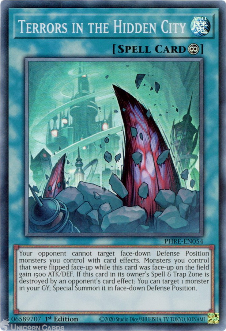 - PHRE-EN054 Terrors in the Hidden City : Super Rare PHRE: Phantom Revenge 1st Edition Mint YuGiOh Card