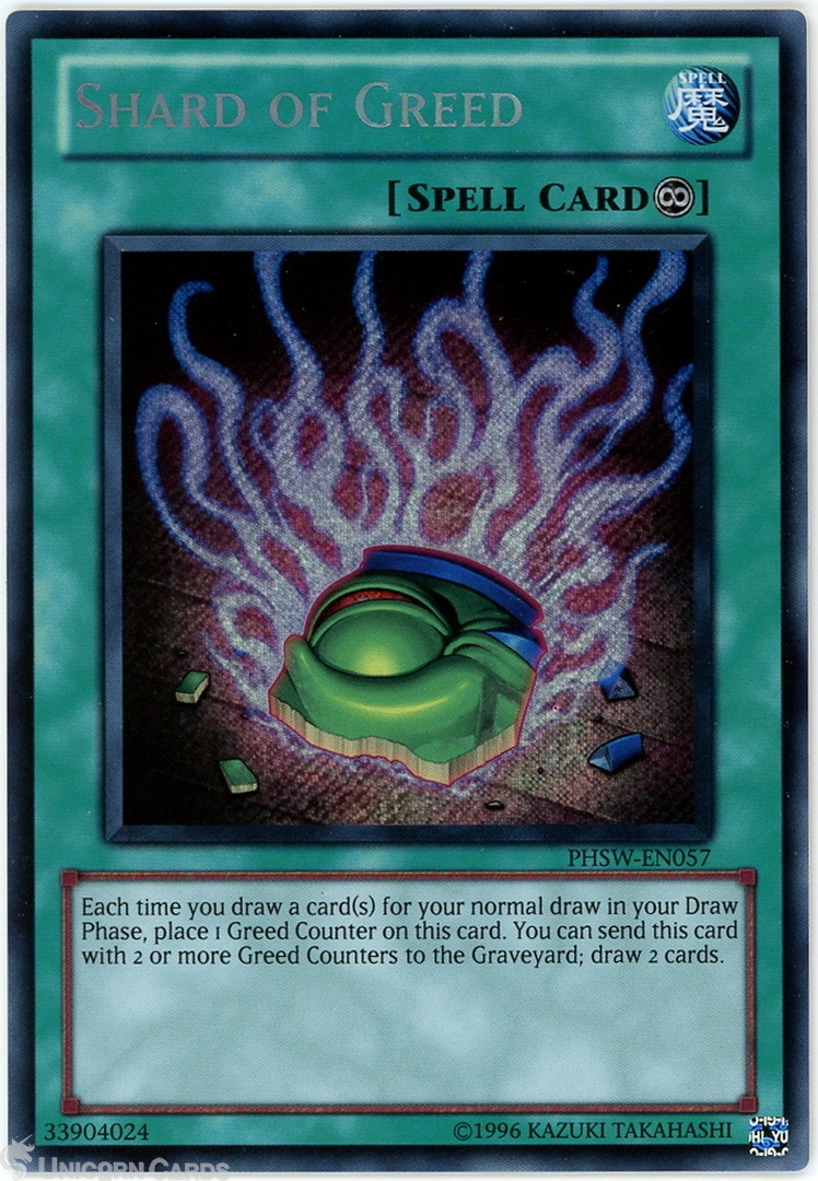 - PHSW-EN057 Shard of Greed Secret Rare UNL Edition Mint Yu-Gi-Oh! Card