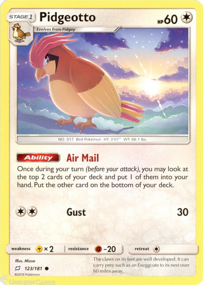 Pidgeotto 123/181 : Common Mint/Near Mint Pokemon Card : SM09: Team Up