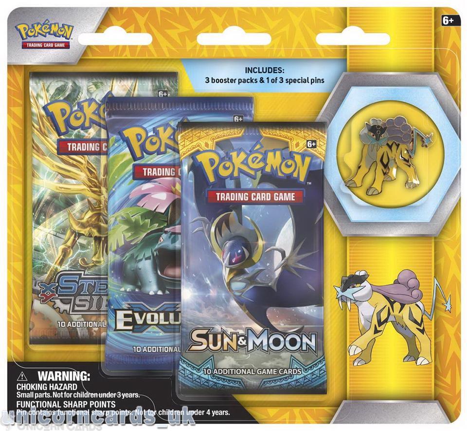 Pokemon TCG: Collector’s Pin 3-Pack Blister :: Raikou :: 3 Booster Packs + Pin :: Brand New And Sealed