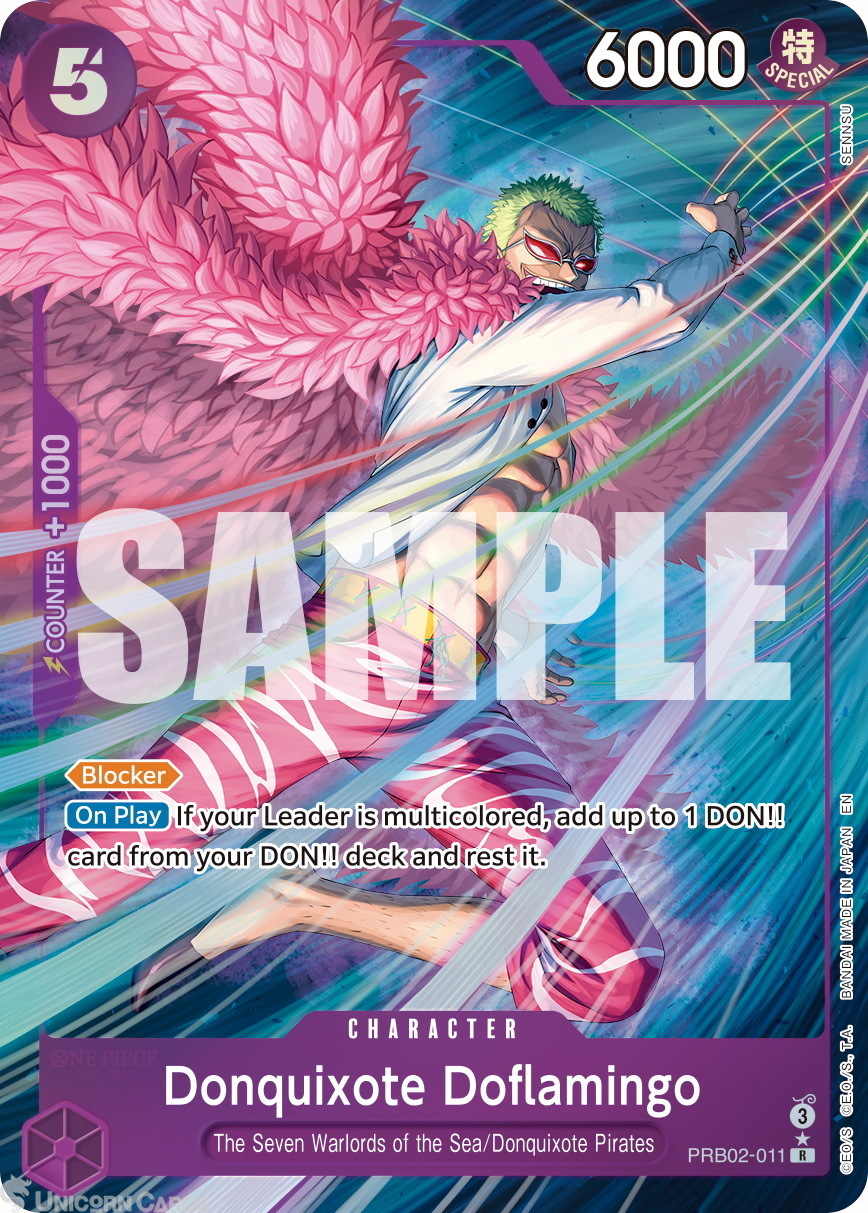 PRB02-011 Donquixote Doflamingo : Rare Alternative Art Foil English One Piece TCG Card : PRB02: One Piece Card The Best: Premium Booster Vol. 2