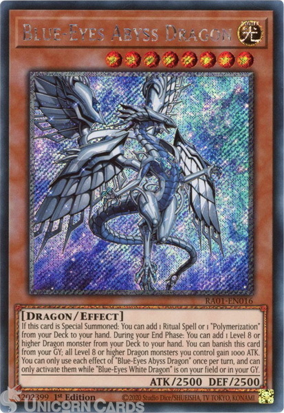 - RA01-EN016 Blue-Eyes Abyss Dragon :: Platinum Secret Rare 1st Edition YuGiOh Card
