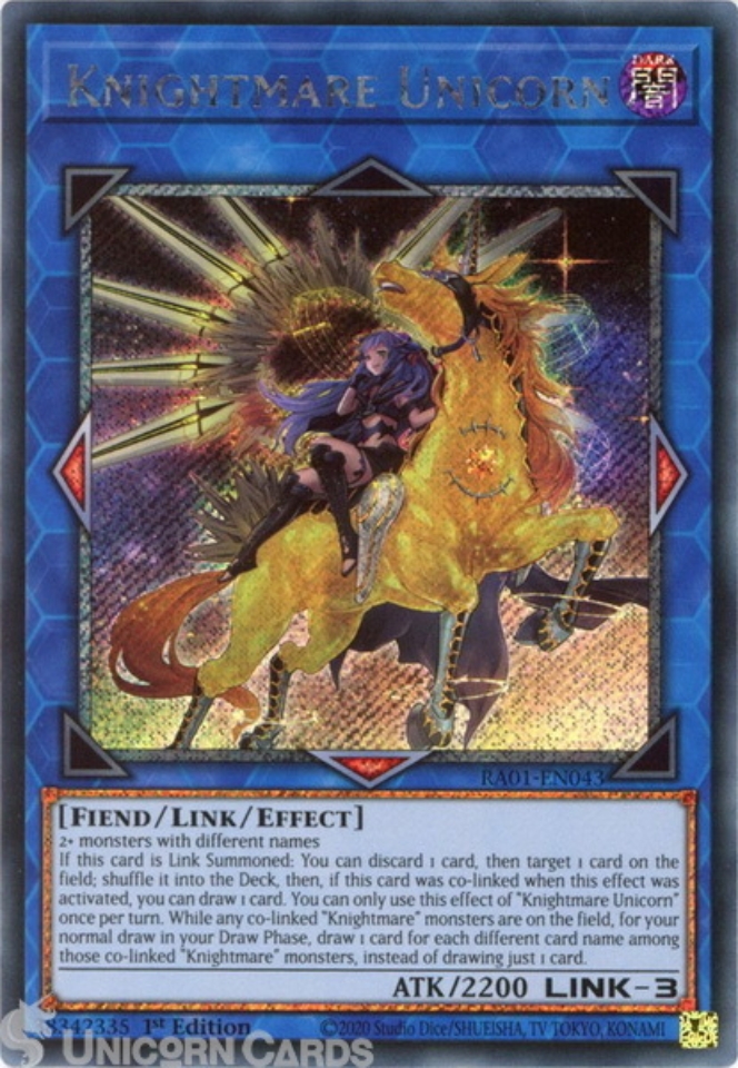 - RA01-EN043 Knightmare Unicorn Alt Art :: Platinum Secret Rare 1st Edition YuGiOh Card