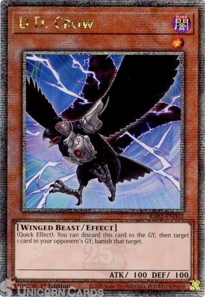 - RA02-EN002 D.D. Crow : Quarter Century Secret Rare 1st Edition YuGiOh Card