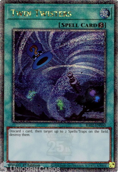 - RA02-EN060 Twin Twisters : Quarter Century Secret Rare 1st Edition YuGiOh Card