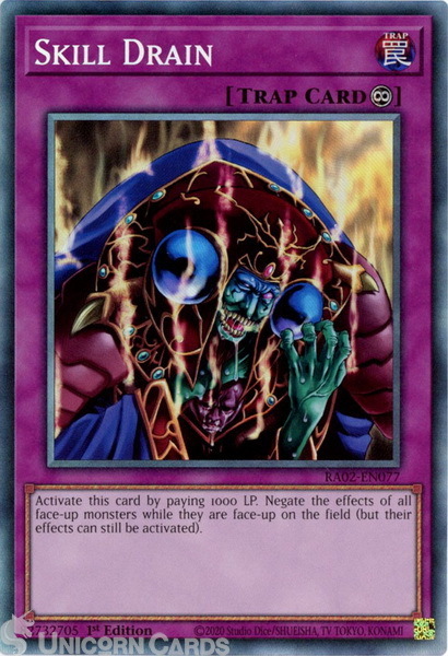 - RA02-EN077 Skill Drain : Collector's Rare 1st Edition YuGiOh Card