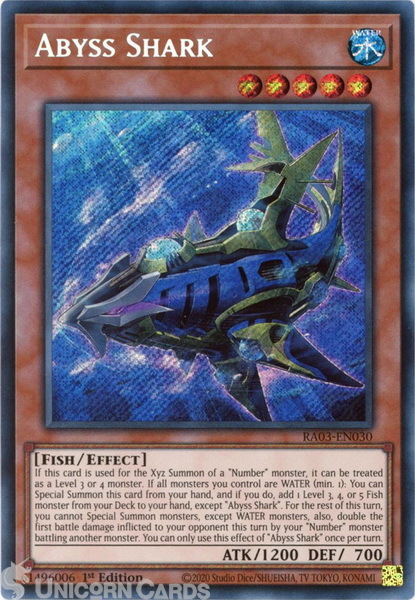 - RA03-EN030 Abyss Shark : Secret Rare 1st Edition YuGiOh Card