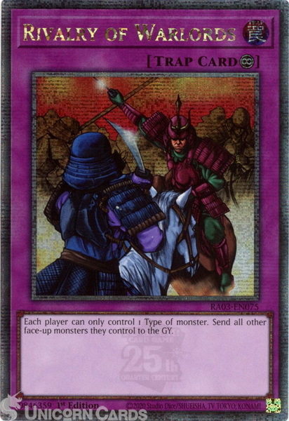 - RA03-EN075 Rivalry of Warlords : Quarter Century Secret Rare 1st Edition YuGiOh Card