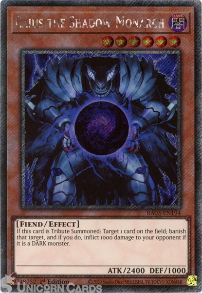 - RA03-EN194 Caius the Shadow Monarch : Platinum Secret Rare 1st Edition YuGiOh Card
