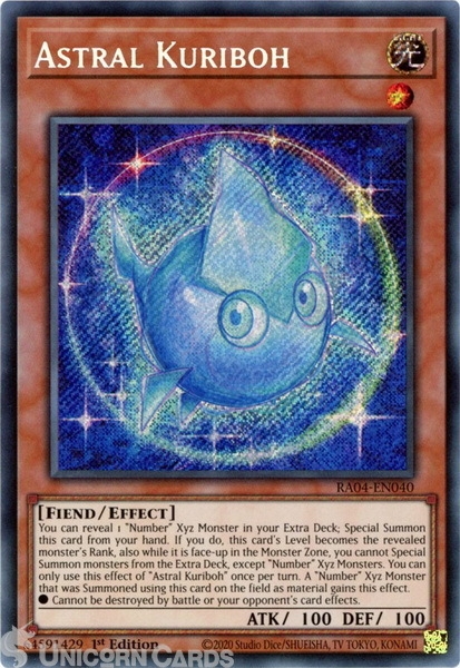 - RA04-EN040 Astral Kuriboh : Secret Rare 1st Edition Mint YuGiOh Card
