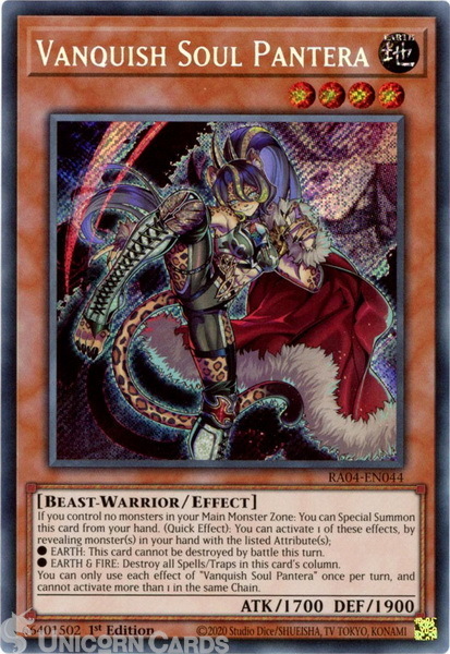 - RA04-EN044 Vanquish Soul Pantera : Secret Rare 1st Edition Mint YuGiOh Card