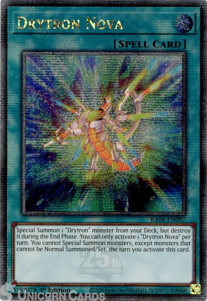 - RA04-EN097 Drytron Nova : Quarter Century Secret Rare 1st Edition Mint YuGiOh Card