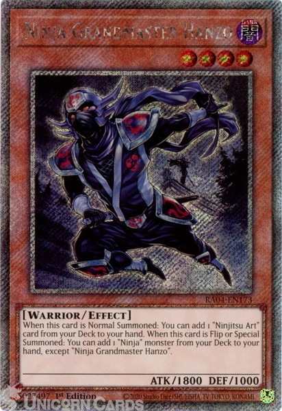 - RA04-EN173 Ninja Grandmaster Hanzo : Platinum Secret Rare 1st Edition Mint YuGiOh Card