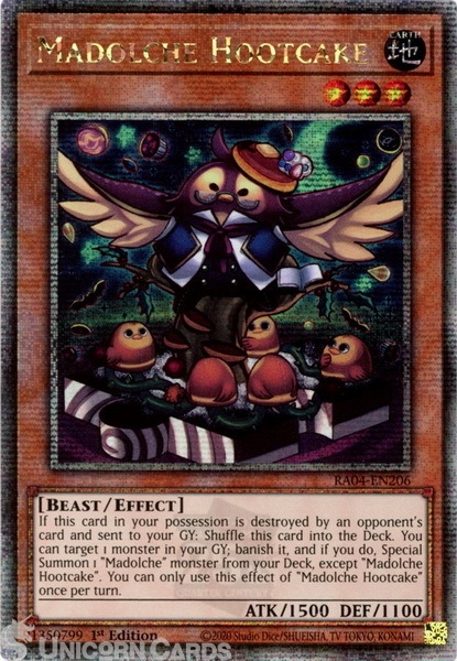- RA04-EN206 Madolche Hootcake : Quarter Century Secret Rare 1st Edition Mint YuGiOh Card