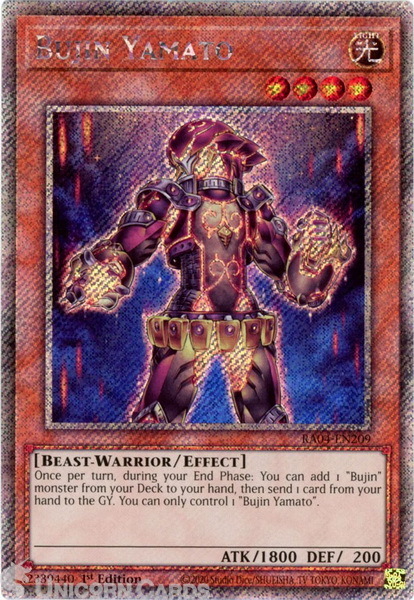 - RA04-EN209 Bujin Yamato : Platinum Secret Rare 1st Edition Mint YuGiOh Card