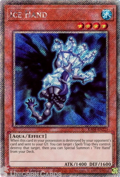 - RA04-EN225 Ice Hand : Platinum Secret Rare 1st Edition Mint YuGiOh Card