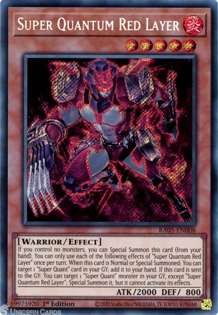 - RA05-EN008 Super Quantum Red Layer : Secret Rare 1st Edition Mint YuGiOh Card