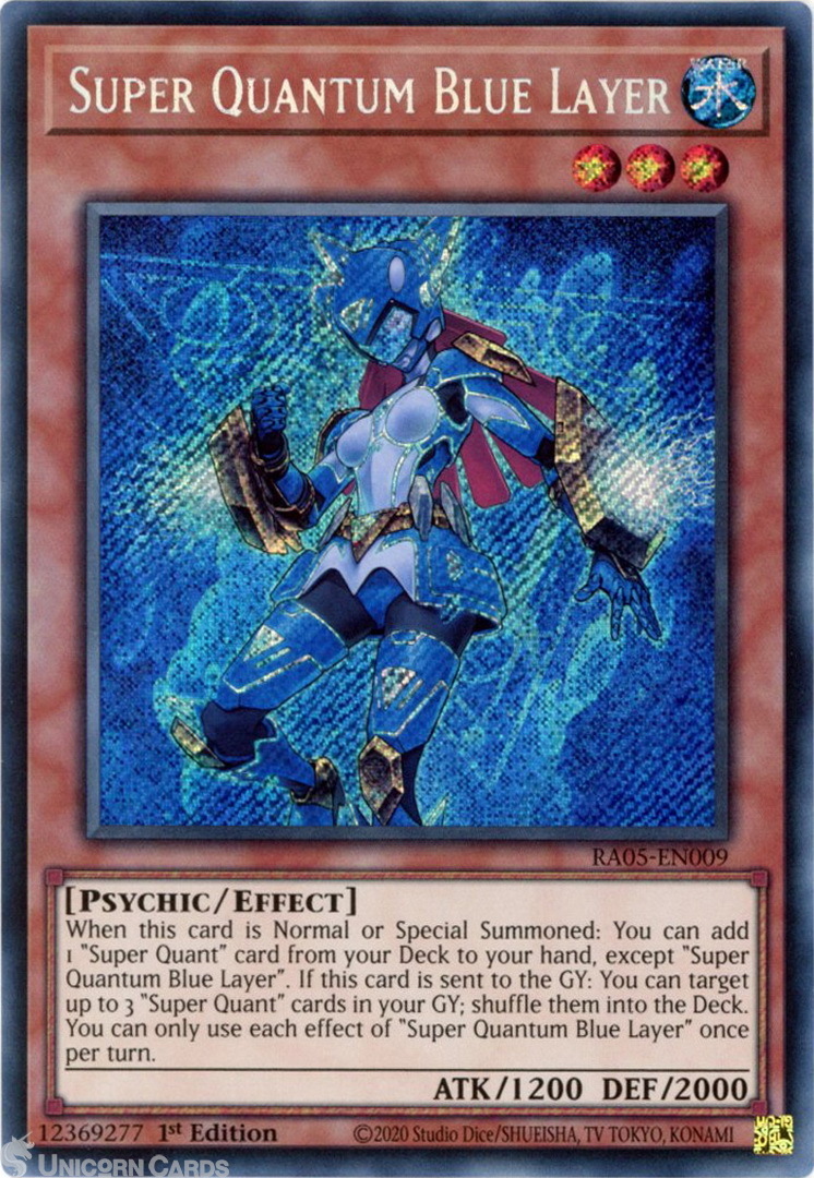 - RA05-EN009 Super Quantum Blue Layer : Secret Rare 1st Edition Mint YuGiOh Card
