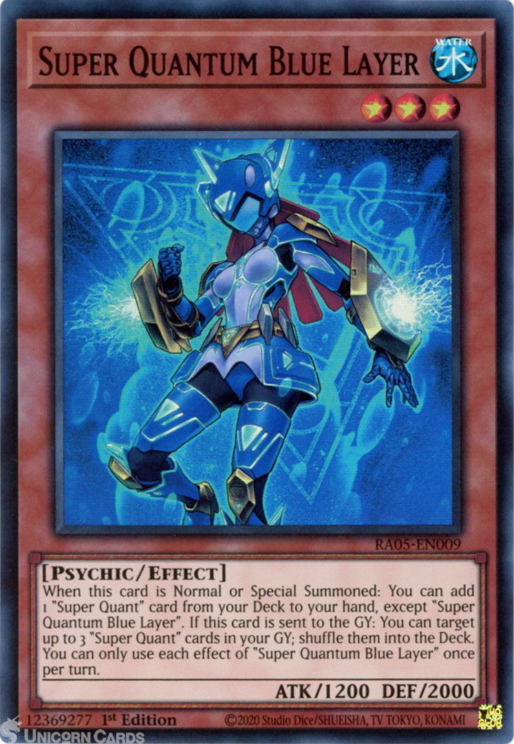 - RA05-EN009 Super Quantum Blue Layer : Super Rare 1st Edition Mint YuGiOh Card