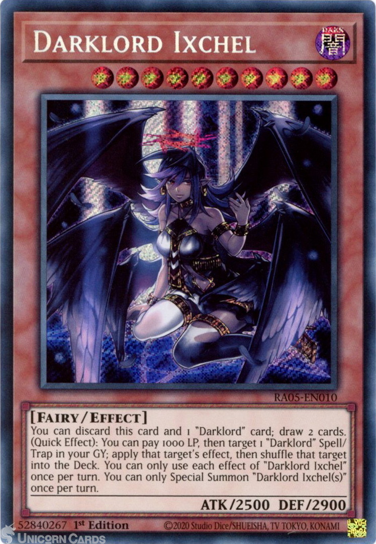 - RA05-EN010 Darklord Ixchel : Secret Rare 1st Edition Mint YuGiOh Card