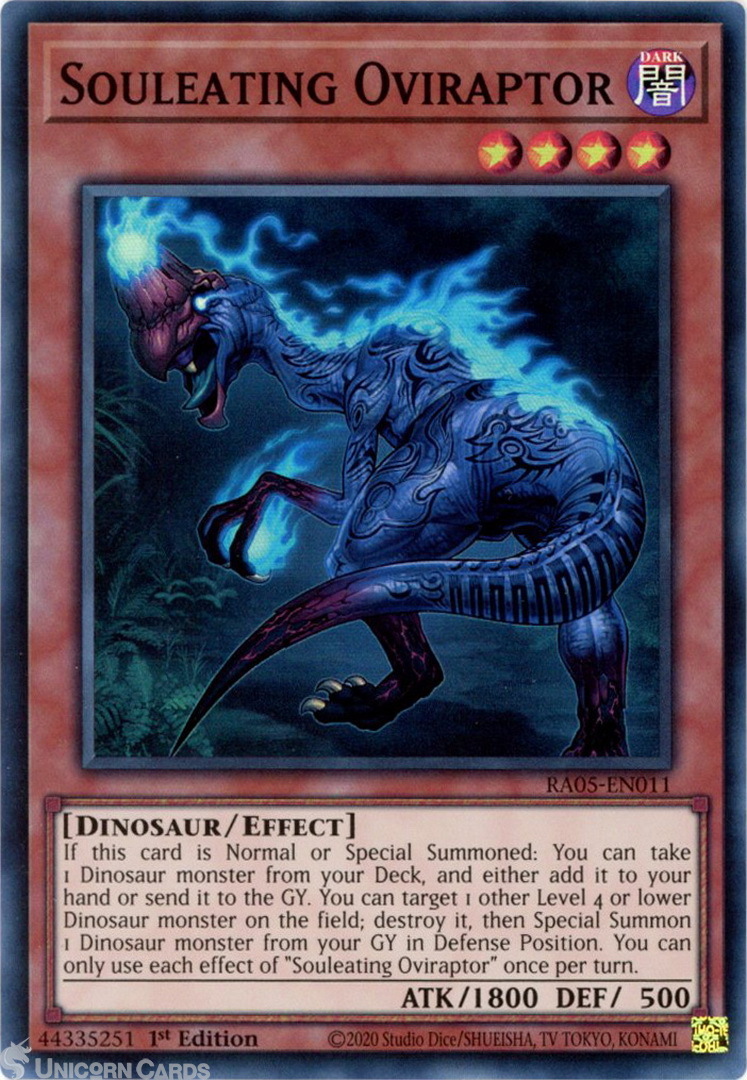 - RA05-EN011 Souleating Oviraptor : Super Rare 1st Edition Mint YuGiOh Card