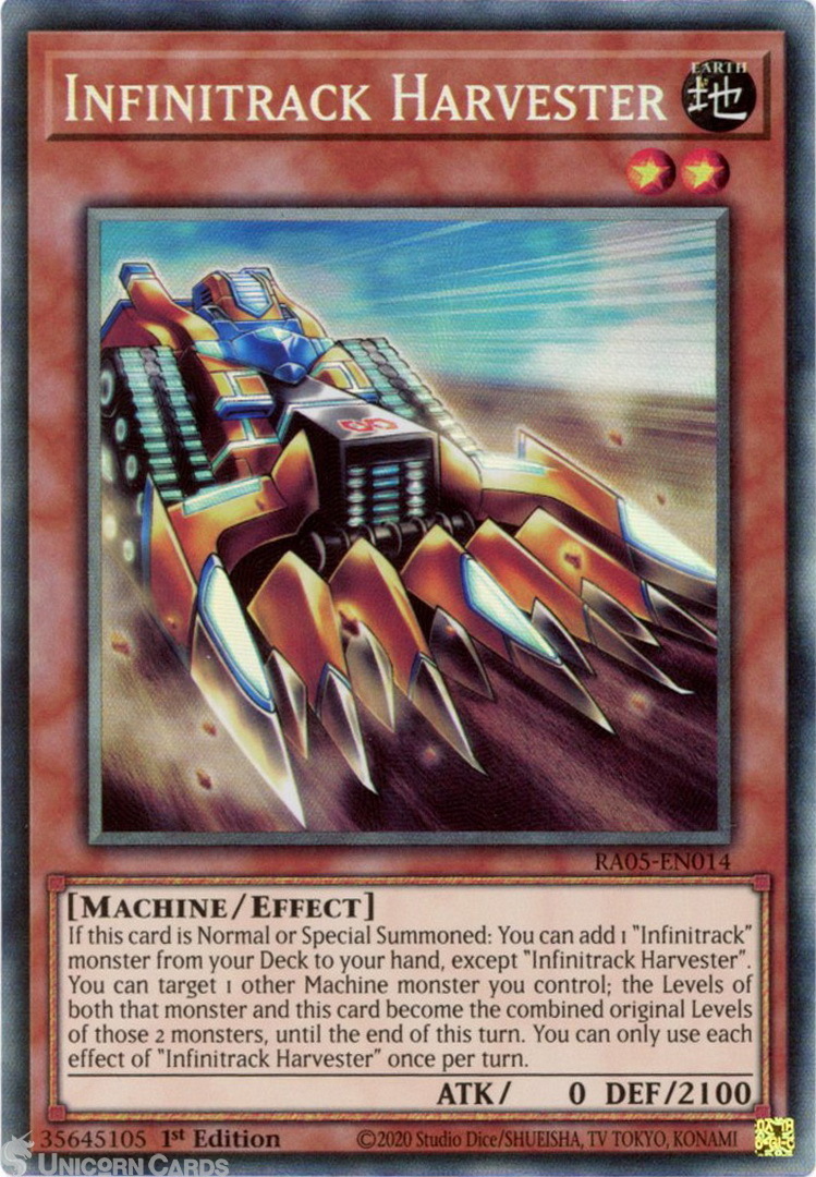 - RA05-EN014 Infinitrack Harvester : Collector's Rare 1st Edition Mint YuGiOh Card