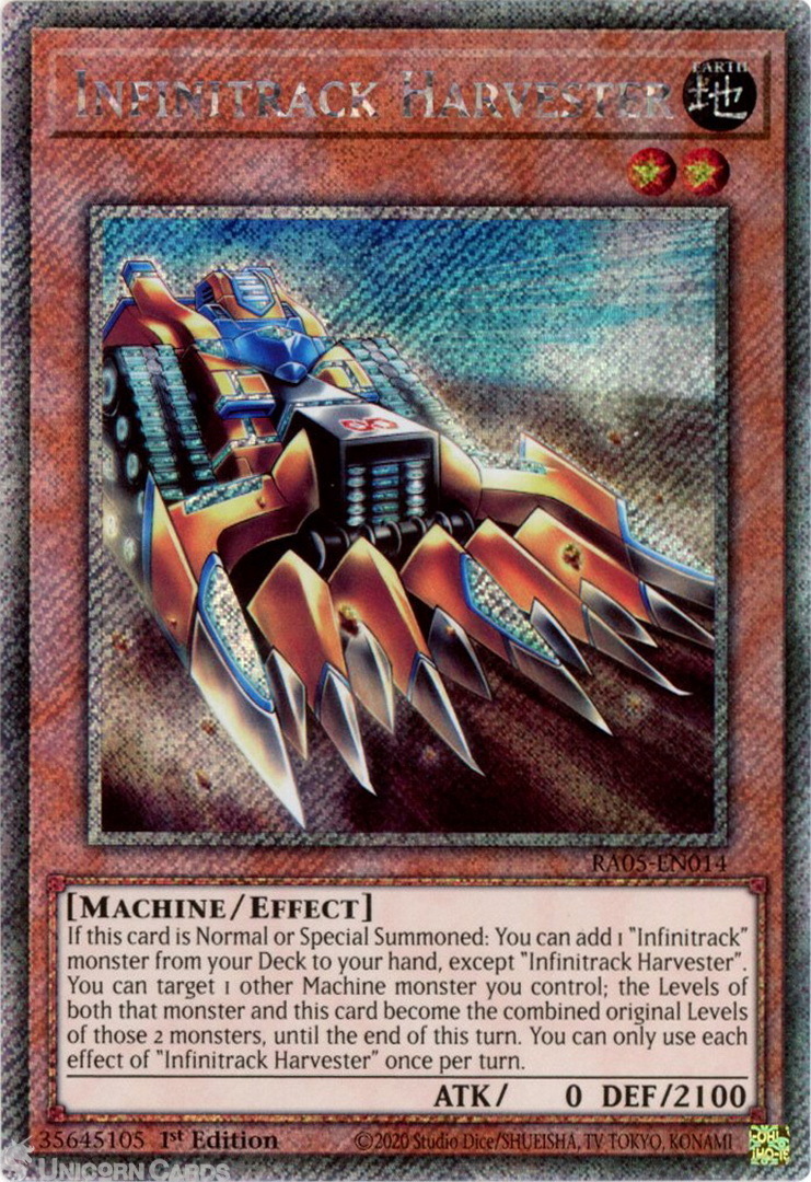 - RA05-EN014 Infinitrack Harvester : Platinum Secret Rare 1st Edition Mint YuGiOh Card