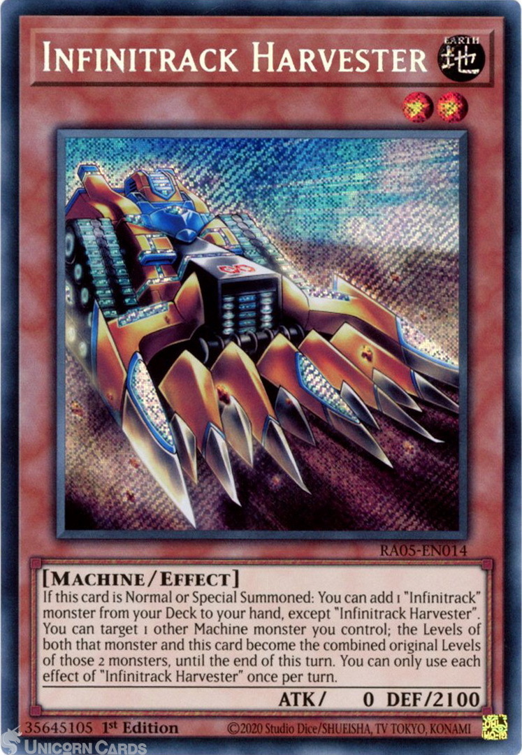- RA05-EN014 Infinitrack Harvester : Secret Rare 1st Edition Mint YuGiOh Card